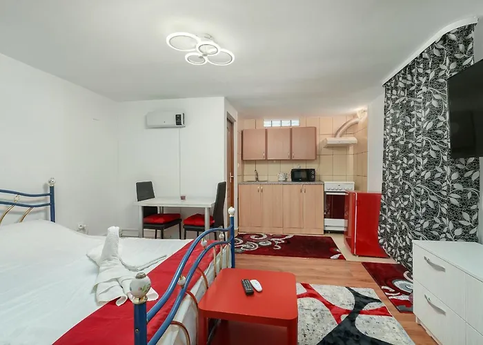 Along with tea and coffee making equipment, the apartment boasts a mini-kitchen featuring a microwave oven, a fridge, and kitchenware. Raul Doamnei tube station is 10 minutes' walk away and Dantelei bus station is 5 minutes' walk from the 25 m^2 apartment. Views of the garden are to be observed from a terrace.